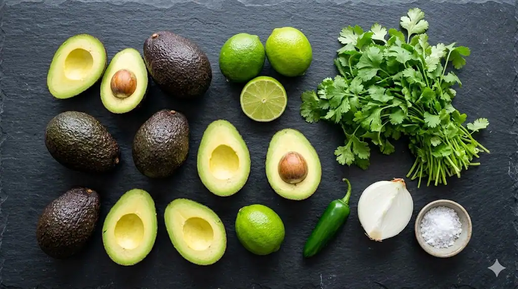 Authentic, traditional Mexican guacamole requires only a few high-quality ingredients: ripe Hass avocados, fresh lime juice, finely diced white onion, fresh cilantro, minced jalapeño or serrano peppers, and kosher salt. Fillers like sour cream are not traditionally used.
