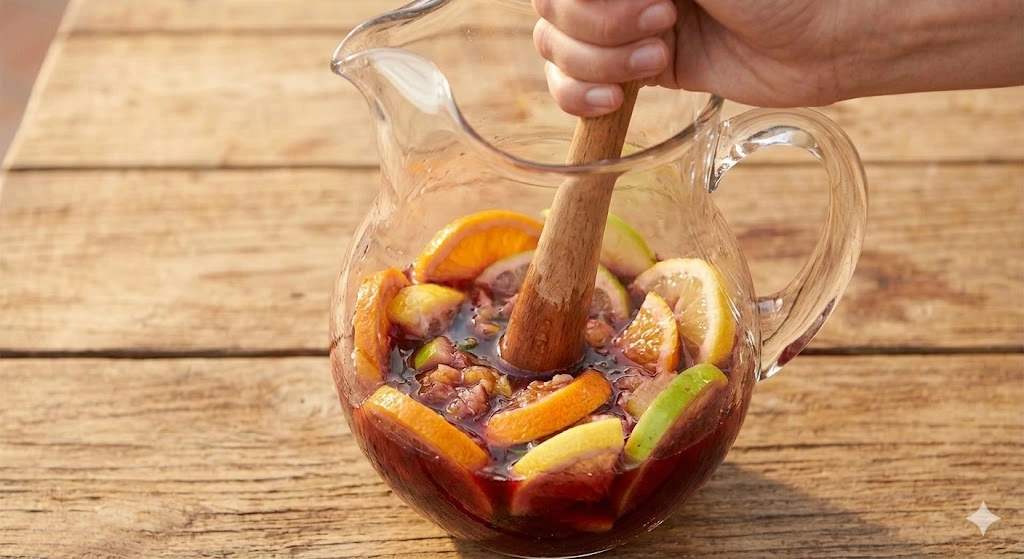- Muddle the Ingredients: Place the sliced fruit and your chosen sweetener into a large glass pitcher. Use a wooden spoon or muddler to gently press the fruit for about 30 seconds, releasing the natural juices.